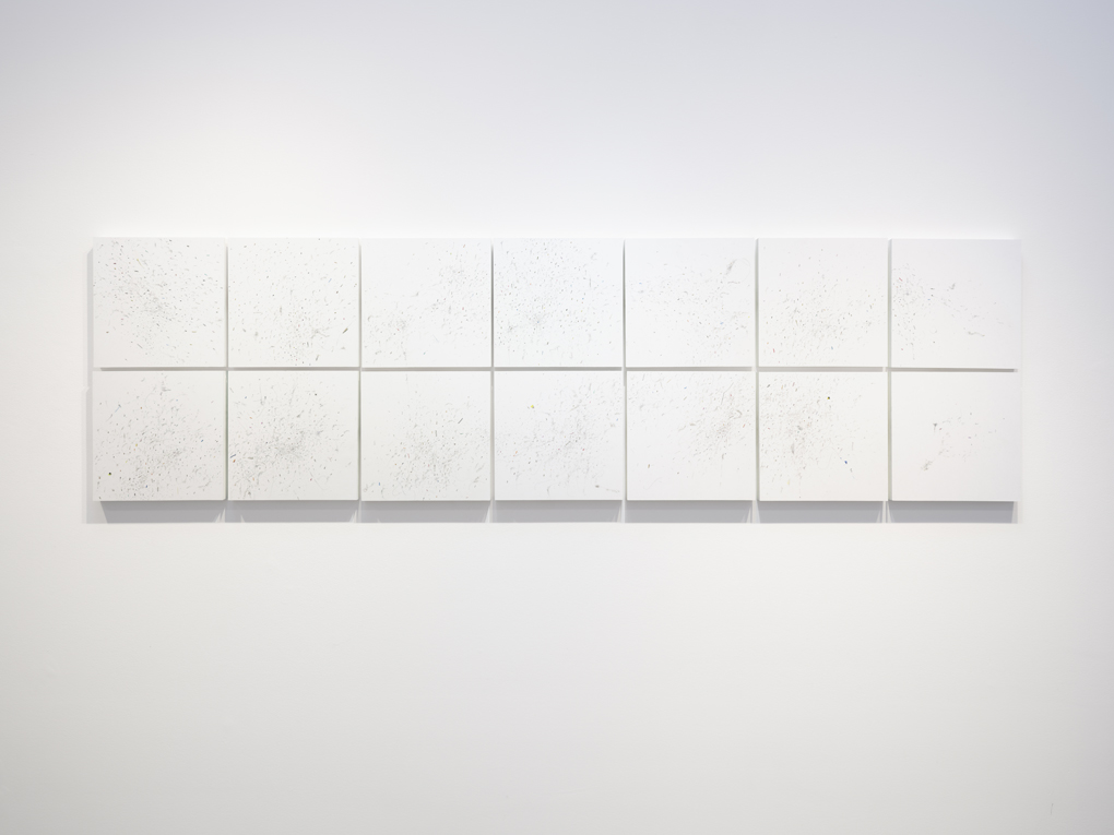 14 colored pencil drawings from the series Dust to Dust, Ground to Overhead, re.riddle, Minnnesota Street Project, San Fracisco, 2024, photo: Dan Liberti