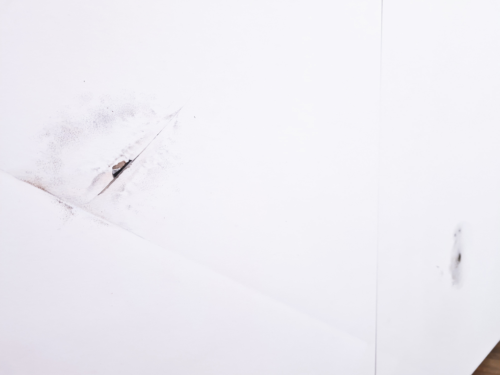 As in the series "dust to dust," Michailov deals with the situational conditions of his respective studios.This time, however, he does not take a closer look at the studio floor, but at its ceiling. The specific peculiarities of a microcosm that have developed over the years are to be depicted. In particular, the artist is now on the lookout for architectural weak points such as wall cracks, water stains or chipped wall edges.The artistic depiction of such weak points is intended to make the viewer think and, if necessary, lead to self-reflection in search of their own "weak points."